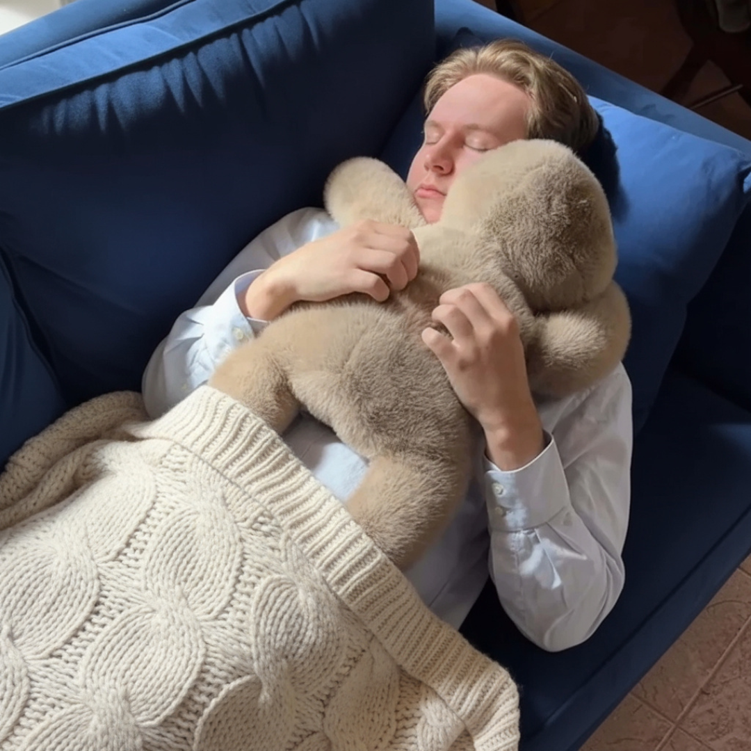 Sie wiegen 1 kg – genau richtig, um beruhigenden Druck zu spenden, ohne zu schwer zu sein. Das Gewicht liegt hauptsächlich in seinen Armen, damit er dich wirklich umarmen und festhalten kann – perfekt zum Kuscheln beim Arbeiten, Entspannen oder Schlafen.